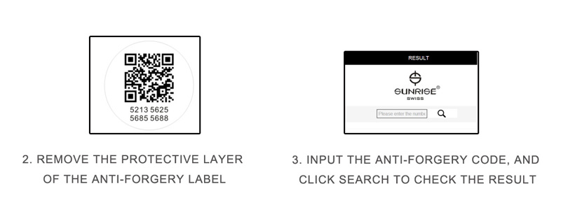 In order to protect the interests of consumers, every SUNRISE brand watch comes with a unique anti-counterfeiting label.